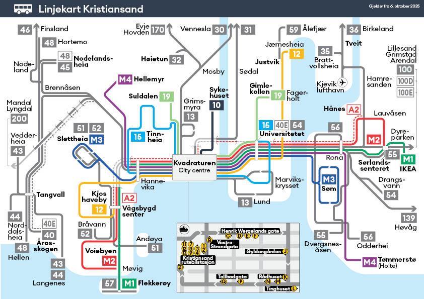 - Use bus line 100 (to/from Arendal/Grimstad/Lillesand) combined with local bus line 35/36 Kristiansand - Kjevik